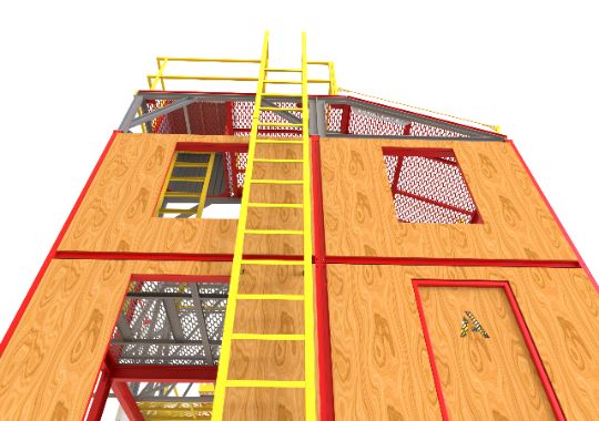 Учебный комплекс из металлоконструкций объединяет в себе различные учебные модули полигона. Все стороны тренажера являются рабочими и предназначены для определенного вида упражнений. Отличное решение для учебных центров.