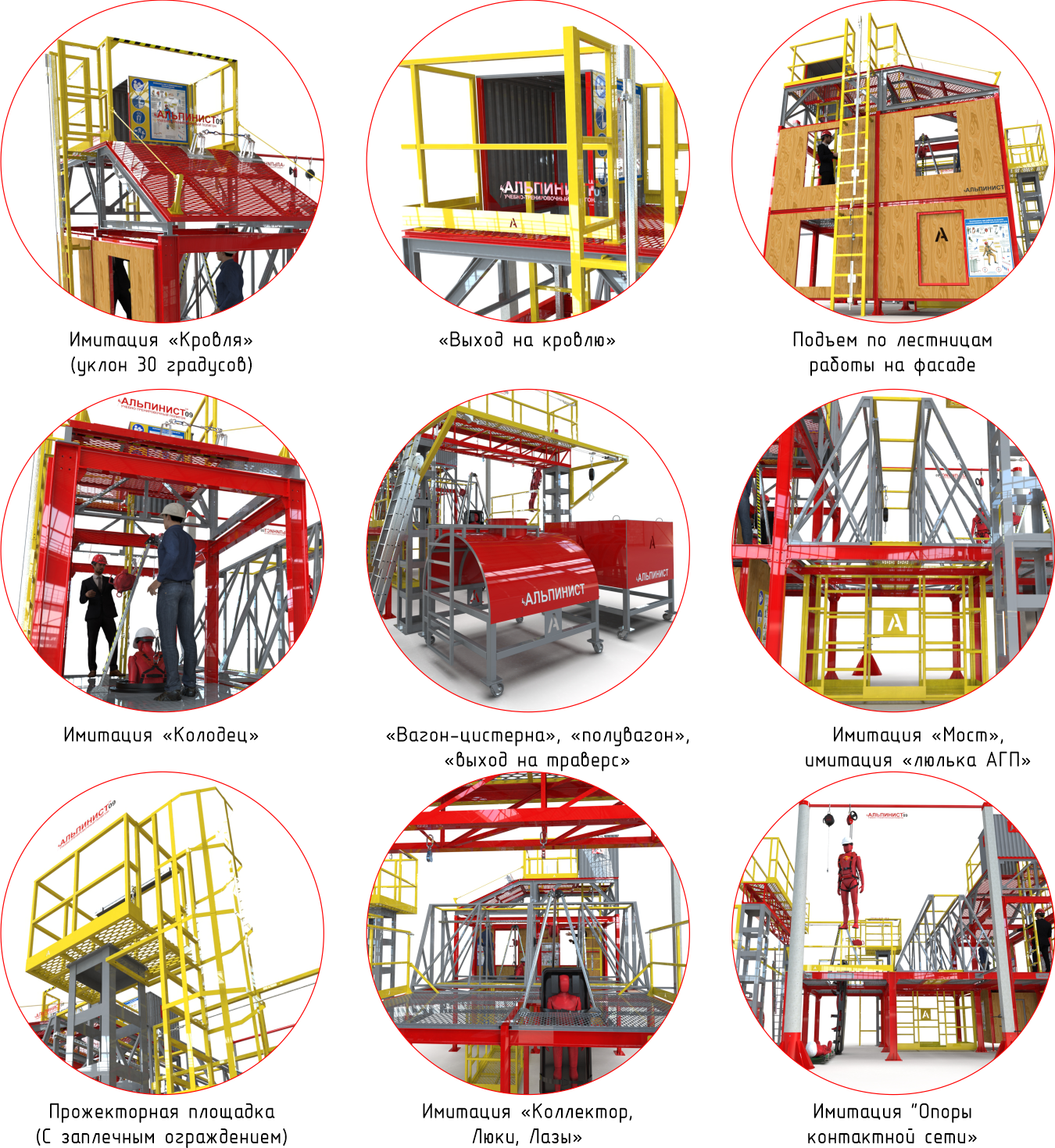 Имитация лестницы башенного крана, опоры ЛЭП, люка, безопорного пространства с использованием альпинистского снаряжения, карнизы, кровли, ливнестоки, бревно. Как конструктор соберите свой учебный стенд.